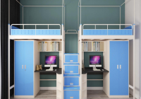 宿舍公寓床因空間利用率大,美觀實用而一直受到學校和員工宿舍的歡迎,那么宿舍公寓床有哪些配置方案呢,今天就來給大家介紹一下。四人間宿舍公寓床配置方案可選擇兩連體宿舍公寓床,有中梯和側梯兩種形式,側梯節(jié)省空間,適用于房間寬度有限的情況,性價比高。中梯學生上下樓更為方便省力,但要有足夠的縱深。