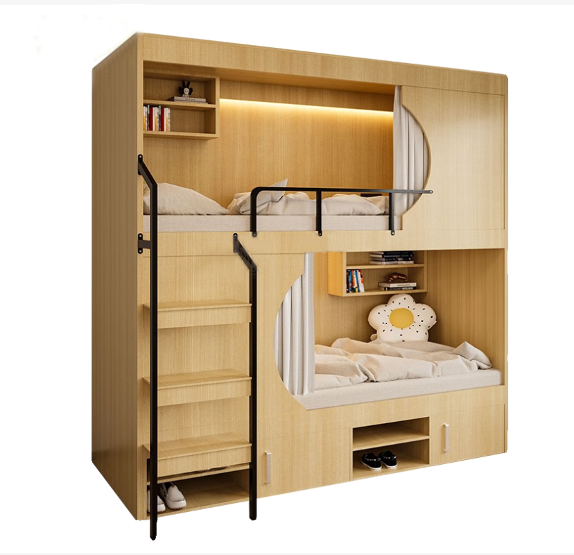 ?樓梯則提供了額外的儲(chǔ)物空間?,雖然可能會(huì)占用更多的使用空間,但它們通常設(shè)計(jì)得更為寬敞,提供了更好的上下便利性。樓梯款式的公寓床適合空間較大或者需要額外儲(chǔ)物空間的場(chǎng)合?。